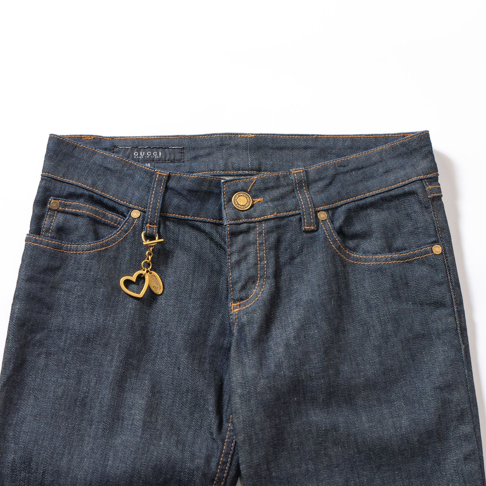 グッチ GUCCI 5ポケット フ デニム ハートチャーム付き 38 インディゴ レディース Y2K 00s イタリア製 ボトムス ジーンズ ジーパン フ パンツ WWW_NICORILABO_COM