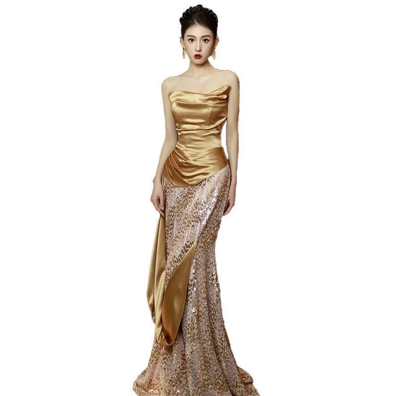 2025年 ゴールド ビストップ イブニングドレス 名媛 フィッシュテール オンステージ 演奏会 ウェディングドレスの検索結果