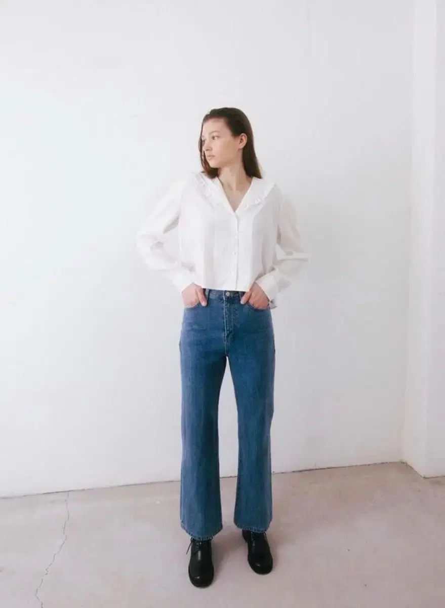 NEPA パリス ロゴ キュービック ウォッシュド ブーツカット デニム パンツ ディープ ブルー