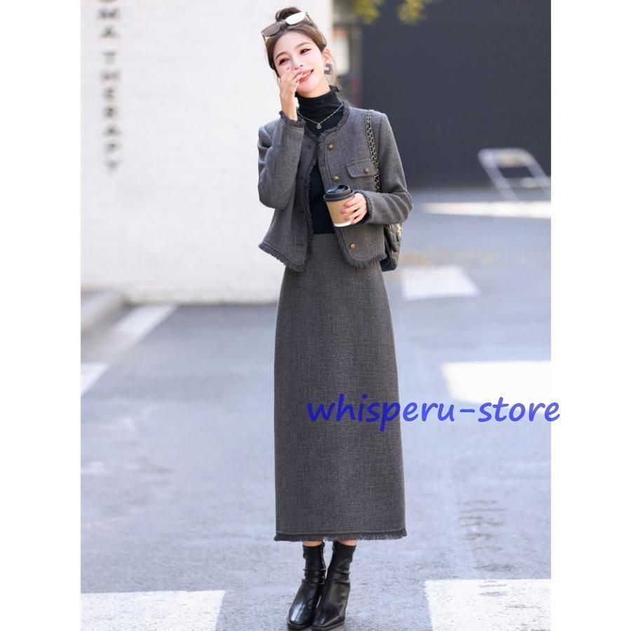 ツイードスーツ セットアップ スーツジャケット ロングスカート スリット入り 大人 きれいめ 入園式 エレガント 上品 おしゃれ 大きいサイ WWW_NICORILABO_COM