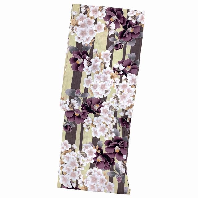 浴衣 レディース 帯セット フリーサイズ イエローベージュ系 桜と紫山茶花 HLY24-266-F WWW_NICORILABO_COM