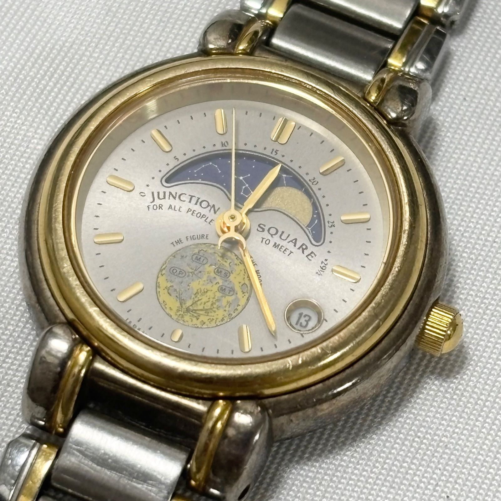 送料無料 CITIZEN|シチズン|JUNCTION SQUARE|ムーンフェイズ|月|クォーツ腕時計|シルバー×ゴールド|電池切れ|動作未 | 品|ジャンク品扱い WWW_NICORILABO_COM