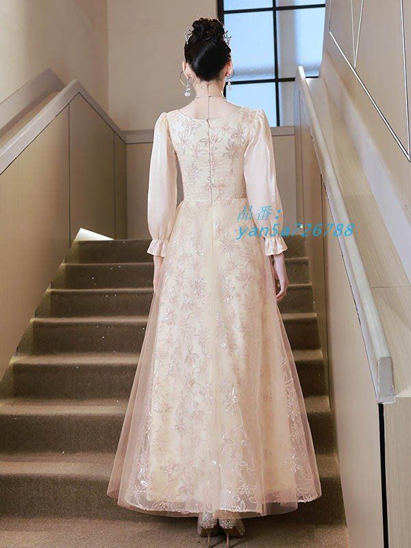 ドレス 大人 ピアノ 発表会 ロングドレス 大きいサイズ ロング 長袖 小さいサイズ 結婚式 演奏会 母親 キラキラ 演奏会用ドレス 袖付き yan5a726788 WWW_NICORILABO_COM