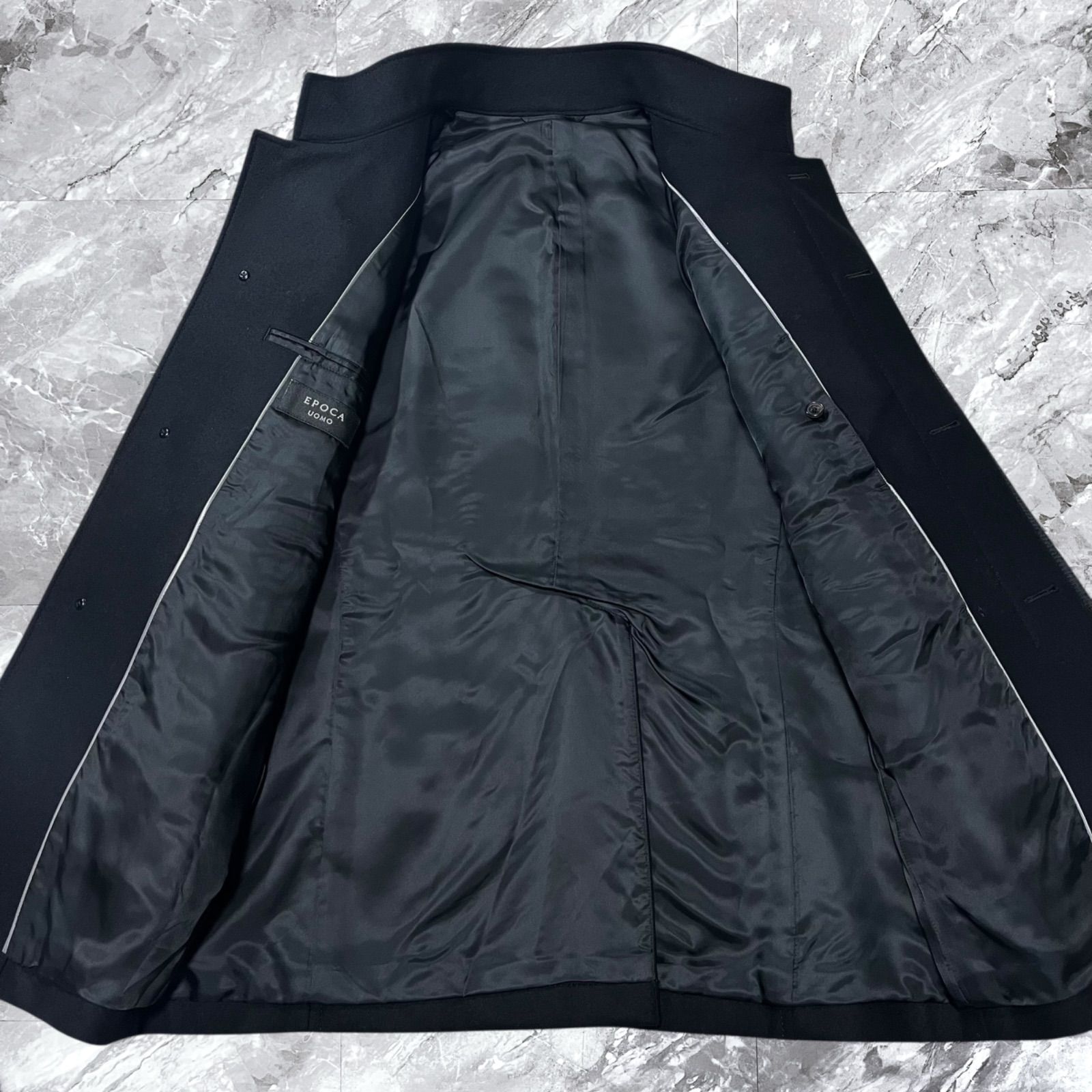 EPOCA UOMO エポカウォモ ウールコート スタンド コート カシミヤ カシミア ウール 比翼ボタン ブラック 黒色 サイズ48 L相当 WWW_NICORILABO_COM