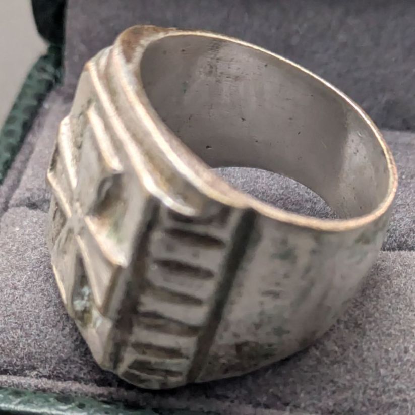 ヴィンテージ シルバープレート ブロンズ ワイドリング 22.5号 22.8g アンティーク調 シンボルデザイン ワイドフェイスの検索結果