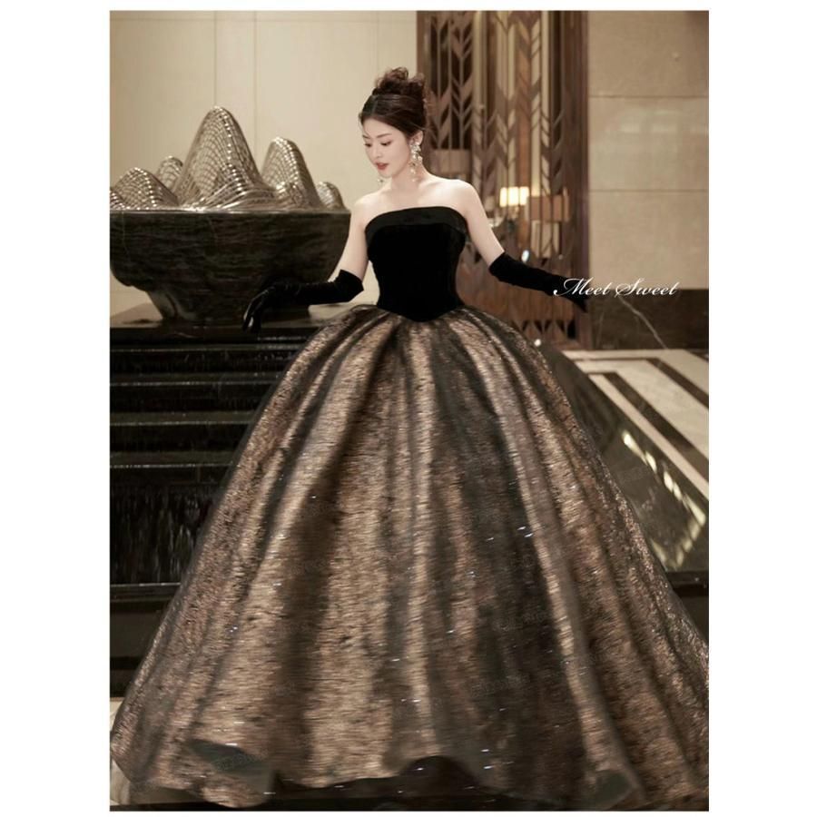 カラードレス プリンセスライン ブラック ベアトップ 黒 ロングドレス ウェディングドレス 結婚式 二次会 花嫁 前撮り 演奏会 発表会 ステージ衣装 お洒落 jjrmh WWW_NICORILABO_COM