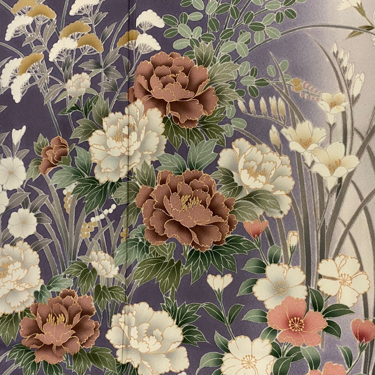 訪問着 身丈166.5cm 裄丈67.5cm L 袷 牡丹 秋草文 金彩 ぼかし 灰紫 正絹 秀品の検索結果