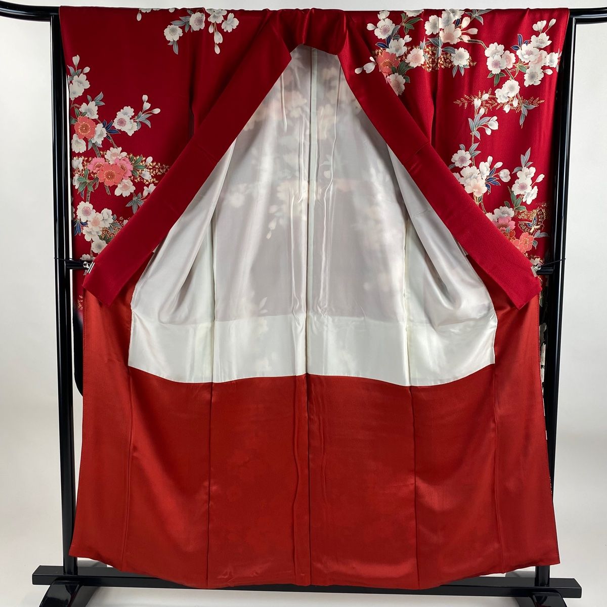 振袖 身丈157cm 裄丈64cm M 袷 桜 蝶 金彩 染め分け 赤 正絹 秀品 WWW_NICORILABO_COM