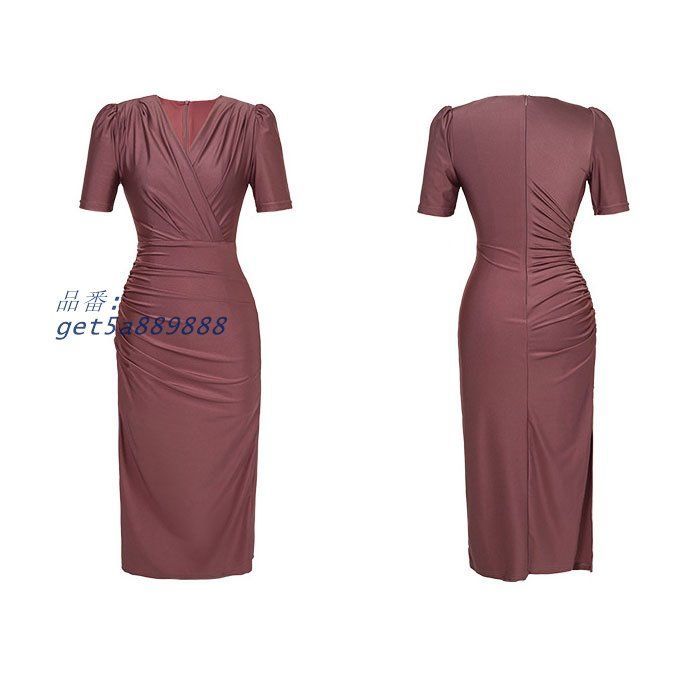 カシュクールVネック ハイウエストロングタイト半袖ワンピース 紫 結婚式 パーティー おしゃれ 韓国 きれいめ get5a889888 WWW_NICORILABO_COM