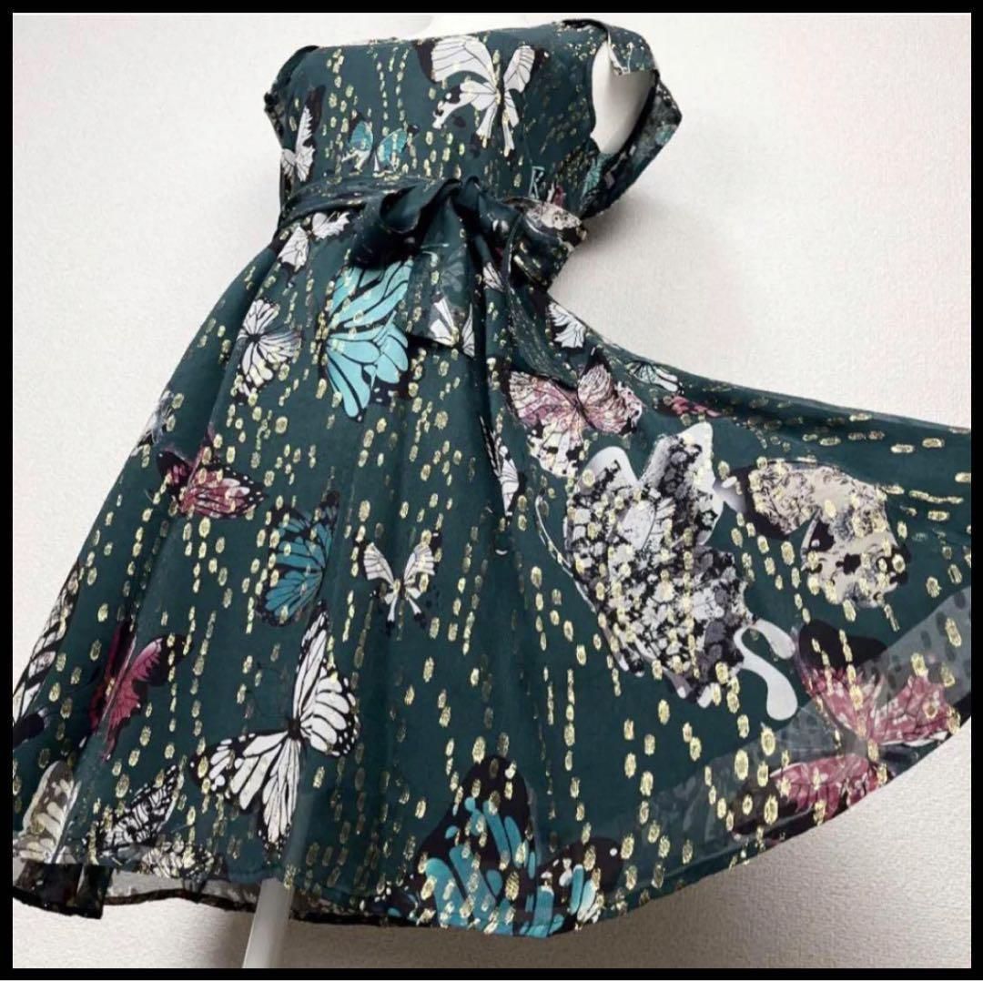 マックス-コー ワンピース シルク シフォン ドレス 蝶柄 グリーン Mの検索結果