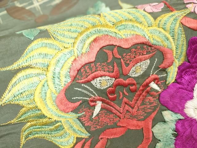 平和屋着物●アンティーク 大正ロマン 両面 京袋帯 刺繍 獅子に牡丹 宝船 金糸 正絹 DAAX3377azの検索結果