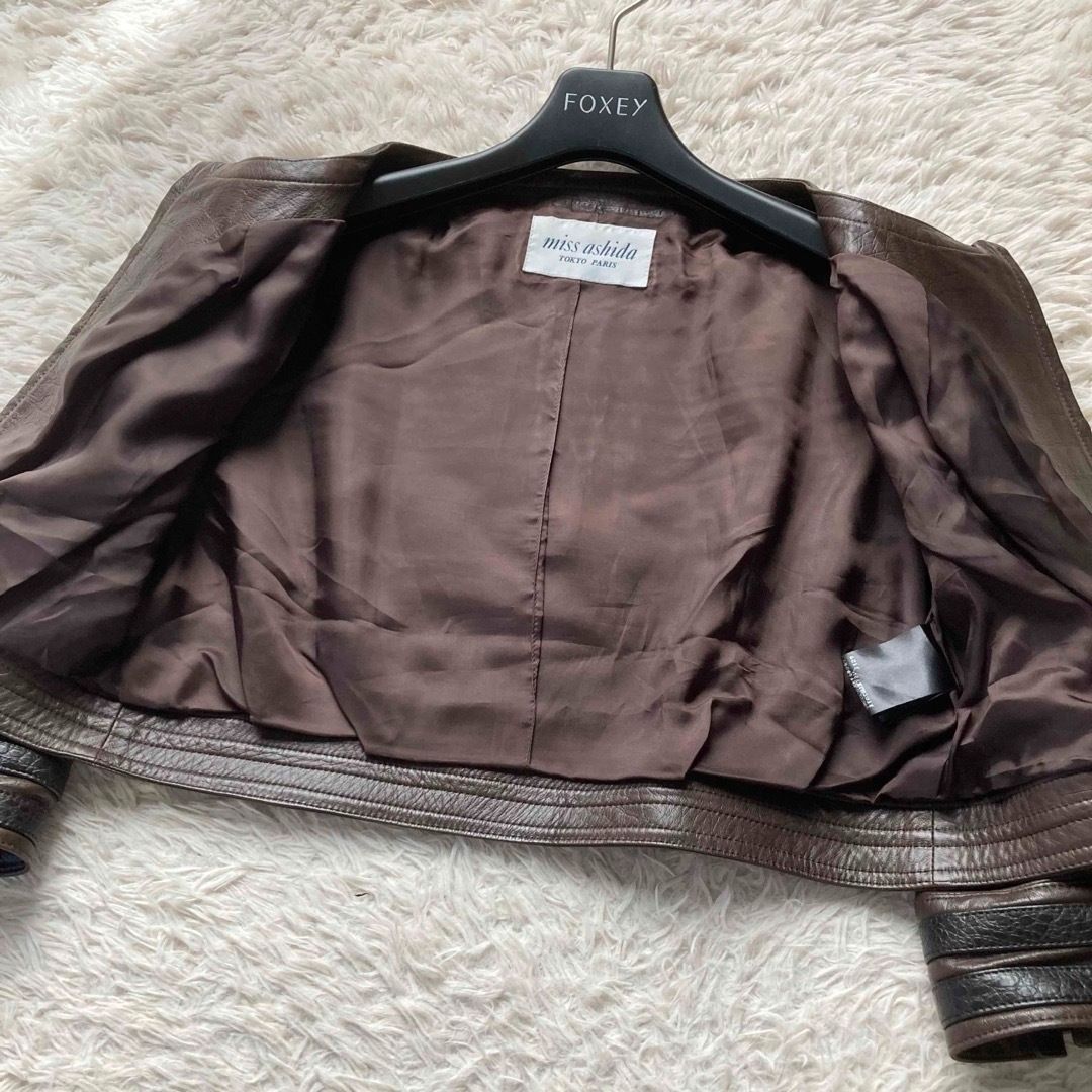 JUN ASHIDA ジュンアシダ ミスアシダ 羊革 クロコ型押し ノーカラーレザージャケット ブラウン 7号サイズの検索結果