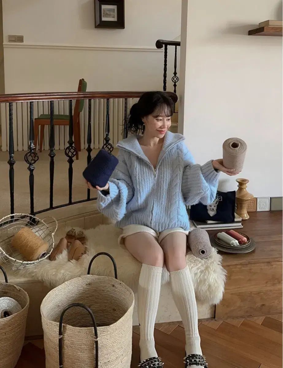 ユンスルショップ カウチン soin カーディガン ブルー