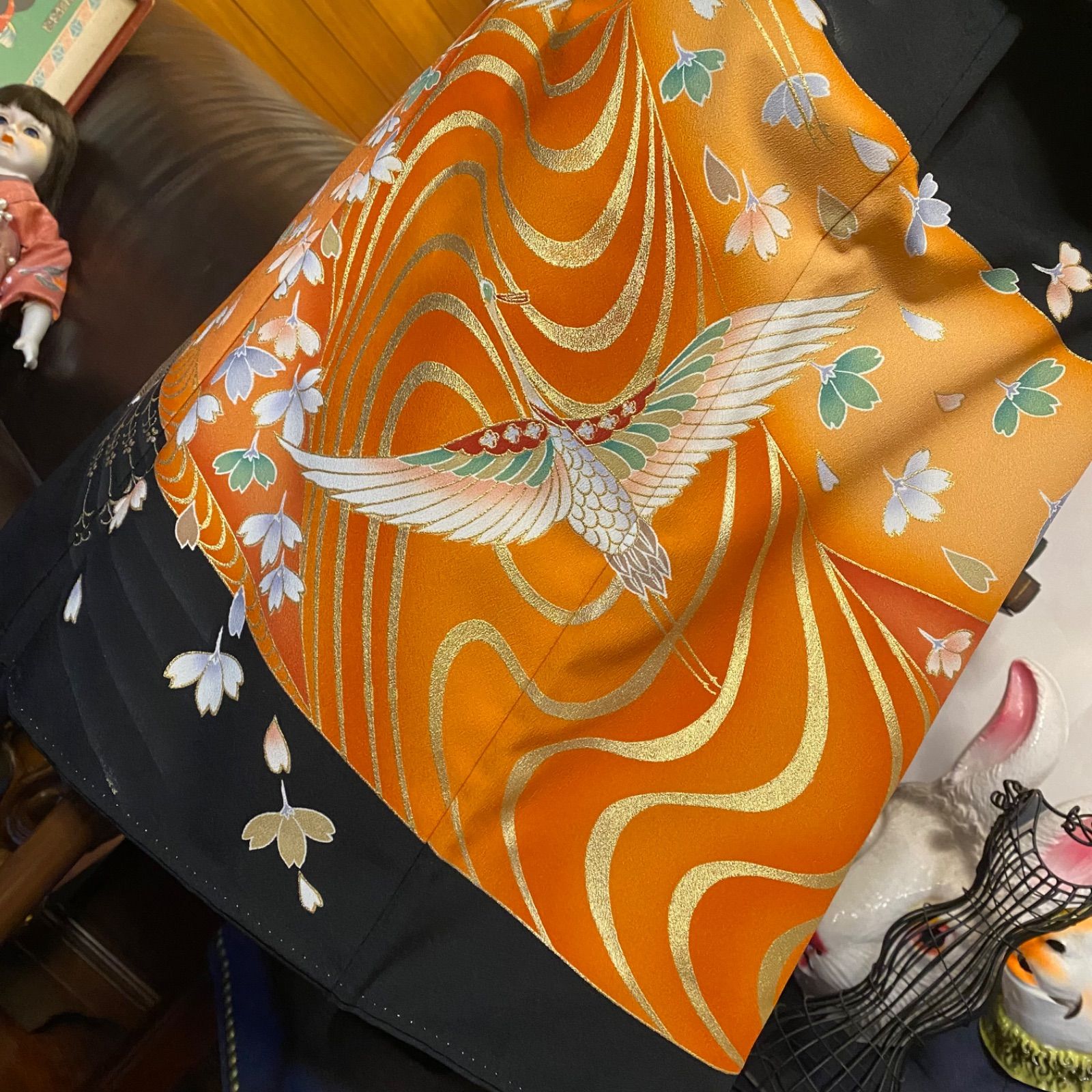 和洋折衷 黒留袖 着物 リメイク ワンピース ドレス 洗える 化繊 ハンドメイド レトロ 古着 和 モダン 舞う鳥×金×黒|ブラック TKW-45の検索結果