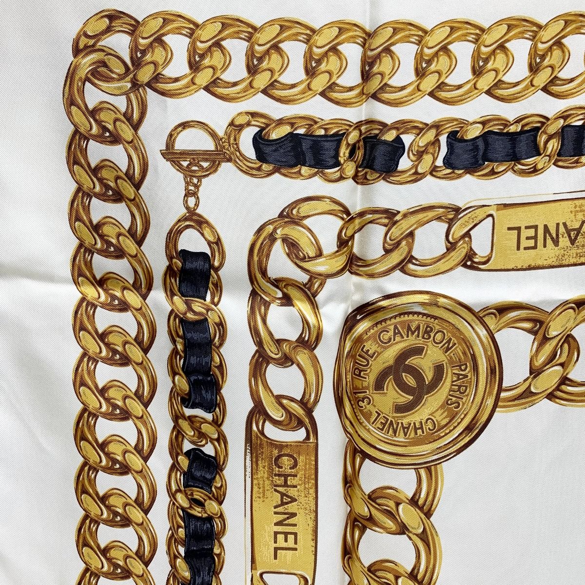 CHANEL シャネル ベージュ チェーン ベージュ シルクスカーフの検索結果