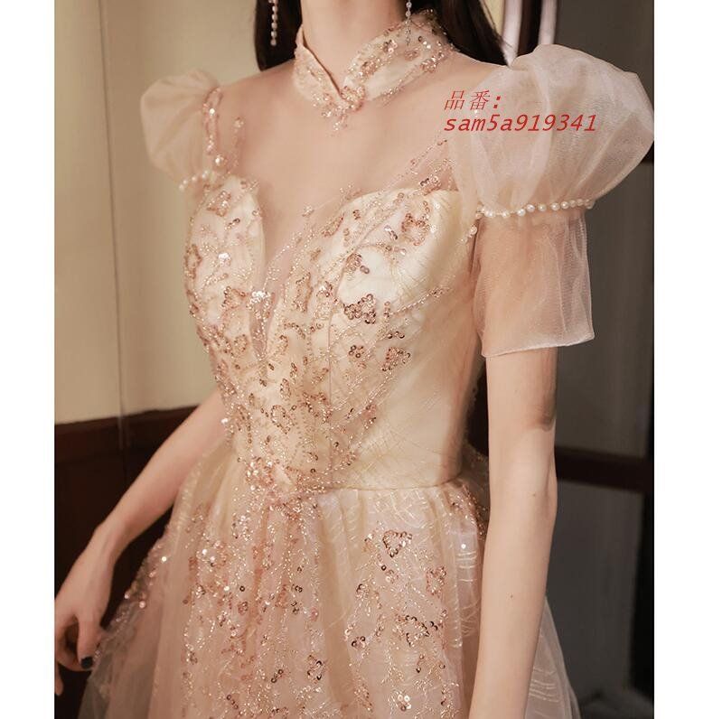 袖あり 立ち襟 トレーンドレス パーティードレス ナイトドレス ウエディングドレス 感 二次会 結婚式ワンピース ロングドレス 発表会 ステージ衣装 演奏会 kni5a848903
