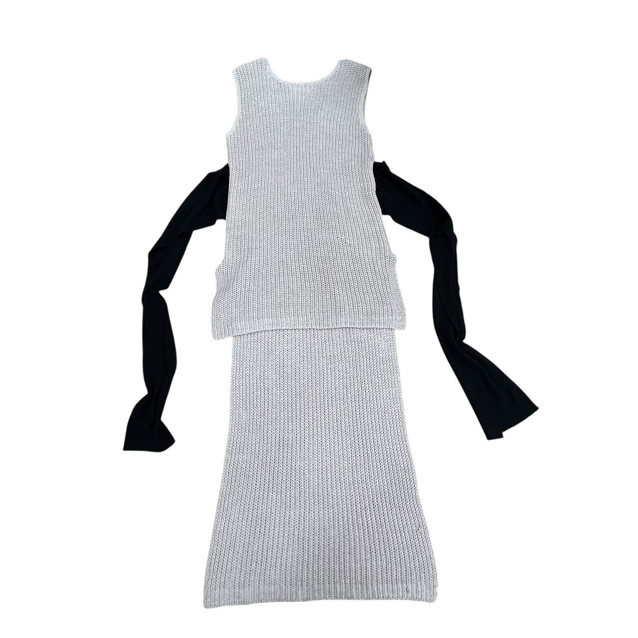 Theory リブニット シフォンノースリーブワンピース プリーツ 大人 め
