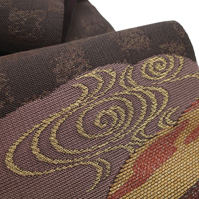 すごい値 袋帯 リサイクル 正絹 牛首紬 織り込み こげ茶 雪輪 霞 流水 市松 上質 カジュアル 仕立て上がり 春 秋 冬 お太鼓柄 パールトーン加工済 お出かけ お食事 ショッピング すごいね みやがわ neb01545 WWW_NICORILABO_COM