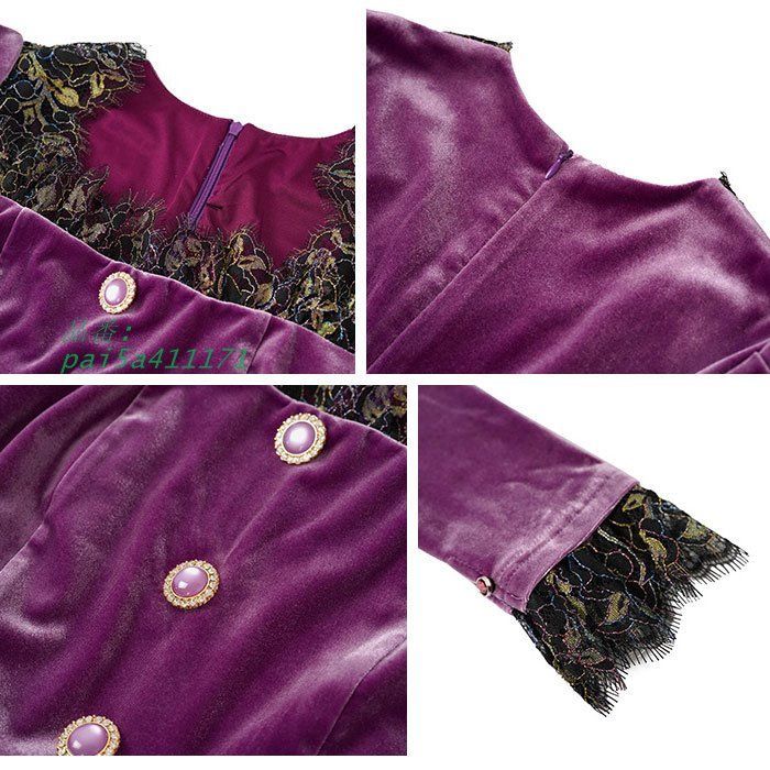 胸元レース前ボタン 長袖ロングタイトベロアワンピース 紫 キャバ スナック パーティー ドレス 服 韓国 レディース pai5a411171 WWW_NICORILABO_COM
