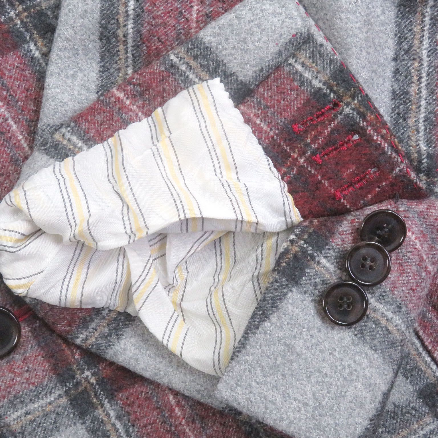 □Cicio チッチオ タータンチェック ビスポーク シングルスーツ 上下セットアップ グレー レッド ネイビー Lサイズ相当 ハンガー付き メンズ WWW_NICORILABO_COM