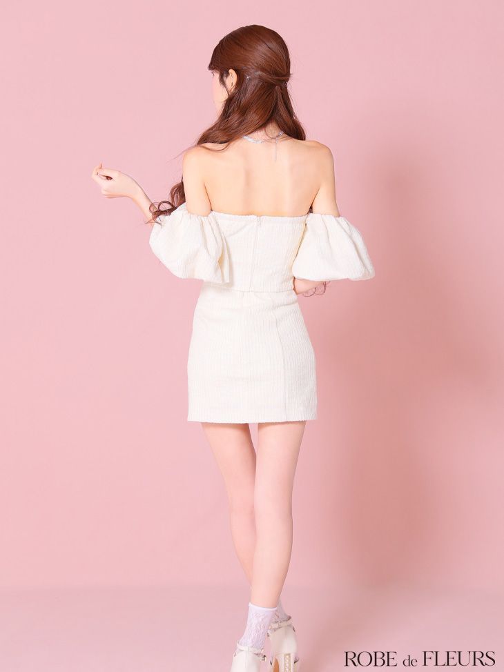 ベージュ fm3269 FM3269-IV-2502 ROBE de FLEURS|ローブドフルール 半袖| ニットツイード| オフショル| セットアップ| タイト| ミニドレス| キャバドレス| ナイトドレス WWW_NICORILABO_COM