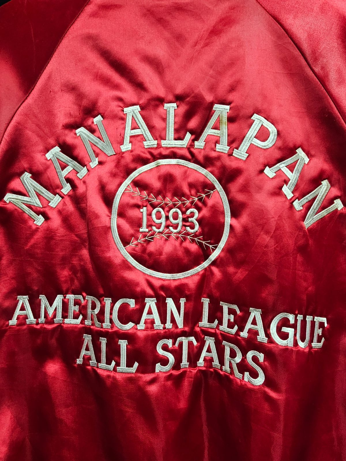 90s AMERICAN LEAGUE ALL STARS Satin Jacket 1993年 アメリカンリーグオールスターズ 記念 関係者向け サテンジャケット レッドの検索結果