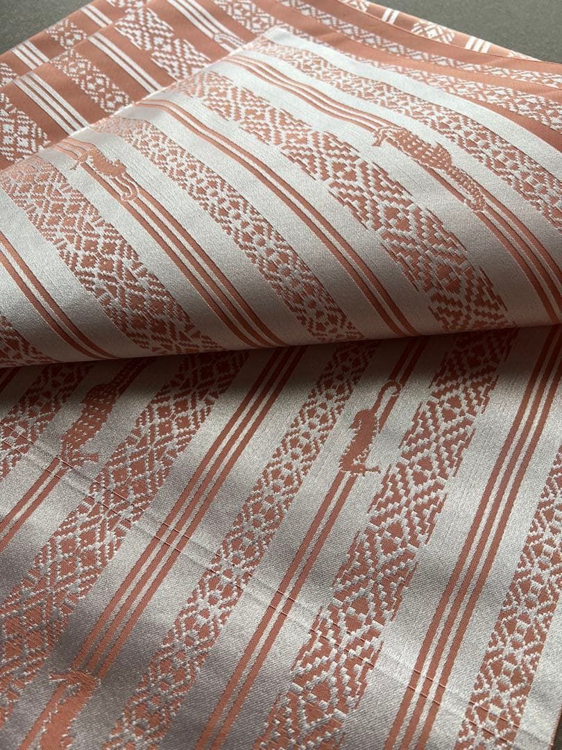 一見普通の博多献上のように見えますが、よく見るとタツノオトシゴ柄で、とても珍しく可愛い帯です。