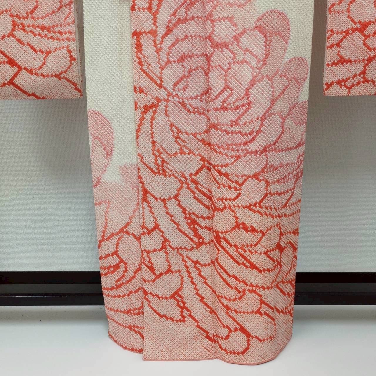 振袖 正絹 総絞り 大胆な花 優しい色味 袷 着物 MK-435