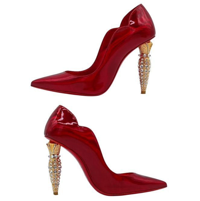 ◆Christian Louboutin◆クリスチャンルブタン パテントレザー パンプス ヒール ポインテッドトゥ 赤 黒 ロゴ