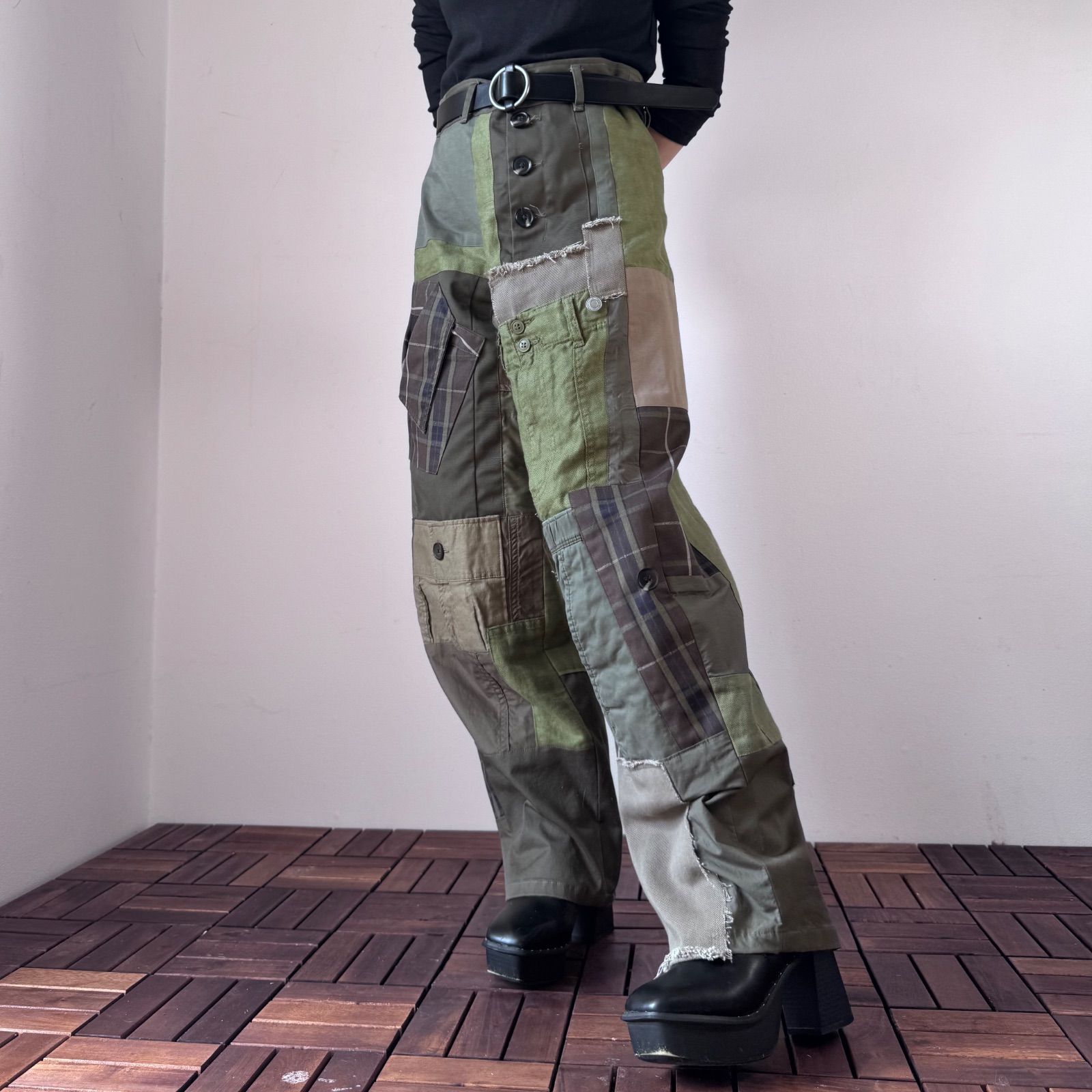 カーキオリーブ色の古着リメイクパッチワーク ワイド|バルーンパンツ No.040の検索結果