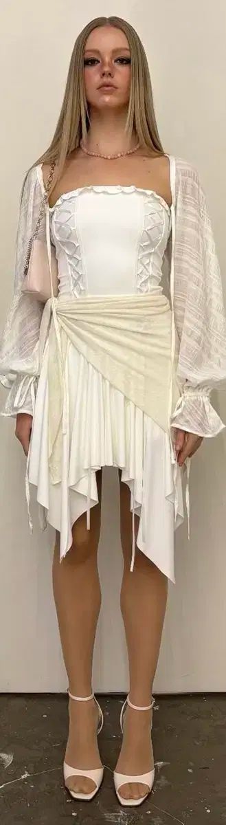 スリータイムズ ストラッチ レースアップ ドレス 白 S スリータイムズの検索結果