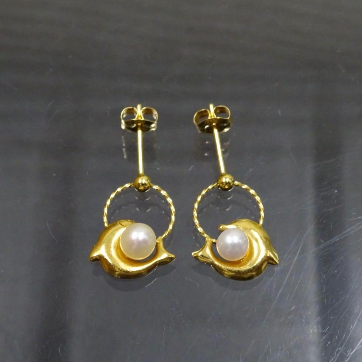 18金 K18 ゴールド GOLD 750 天然ベビーパール ぶら下がり イルカ デザイン ピアス 両耳 総重量約0.64g ジュエリー 宝石 貴金属 レディース 普段使い WWW_NICORILABO_COM