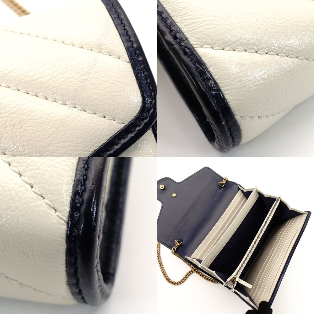 グッチ GUCCI GGマーモント キルティング チェーン ショルダーバッグ ホワイト×ネイビー レザー GGロゴ クロスボディ 7-9-262 WWW_NICORILABO_COM