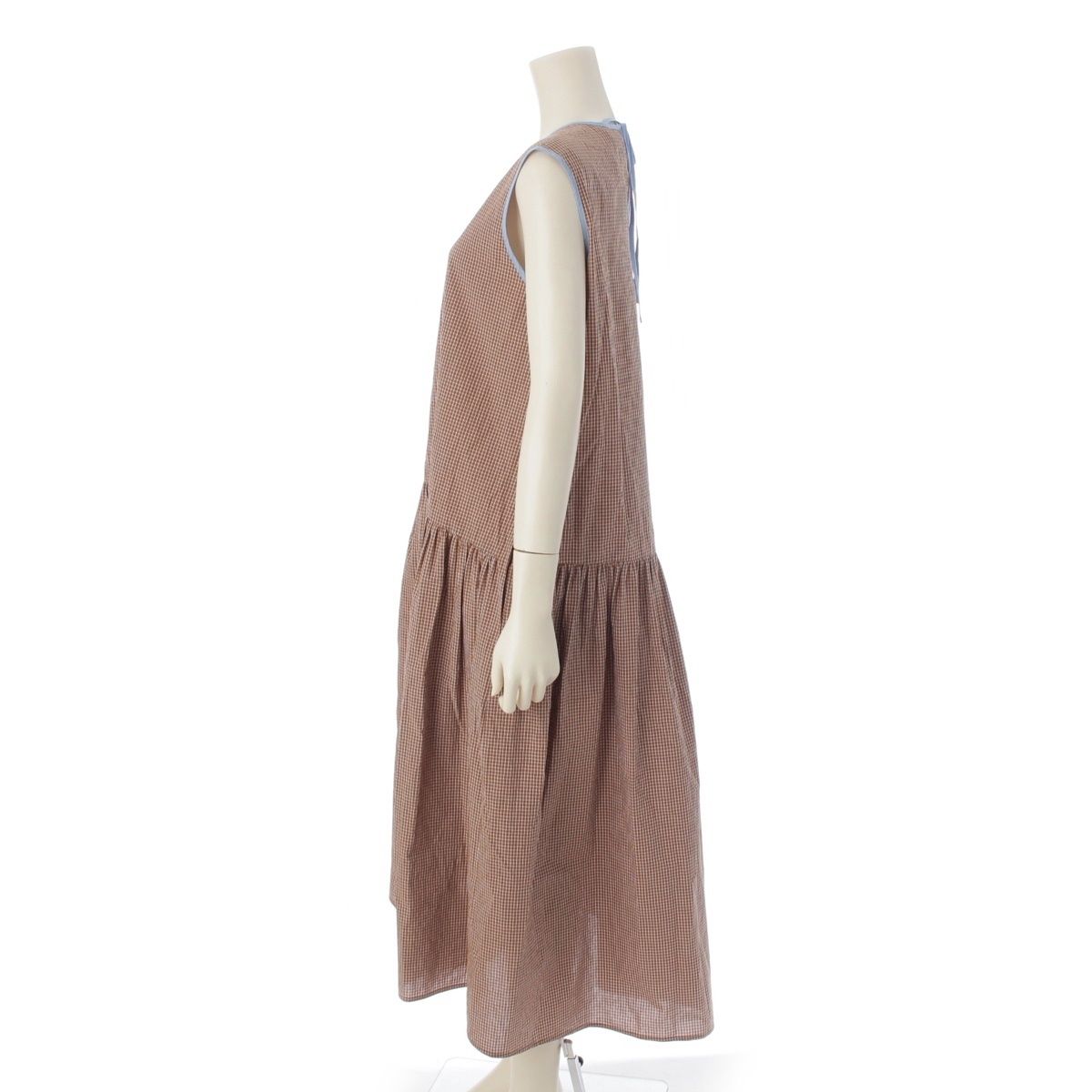 ヨリ コットン パイピングデザイン チェック ノースリーブ ワンピース YR-24-25109K ブラウン 36の検索結果