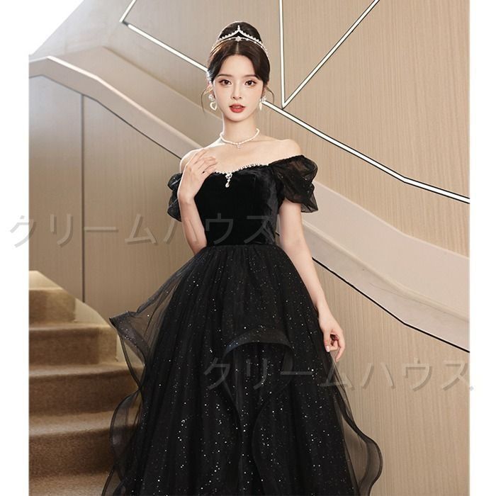 新しい♥ パーティードレス ロング 袖あり ロングドレス 黒 結婚式 お呼ばれ ドレス 演奏会 袖付き 花嫁ドレス フォーマルワンピース A WWW_NICORILABO_COM