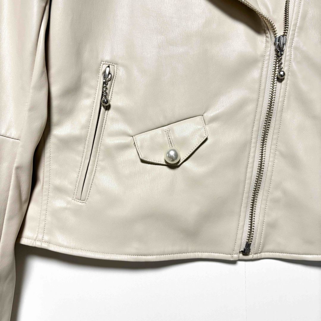 MILK ミルク ダブルライダースジャケット フェイクレザージャケット パール付 ジップアップ オフホワイト サイズ表記なし フリーサイズ WWW_NICORILABO_COM