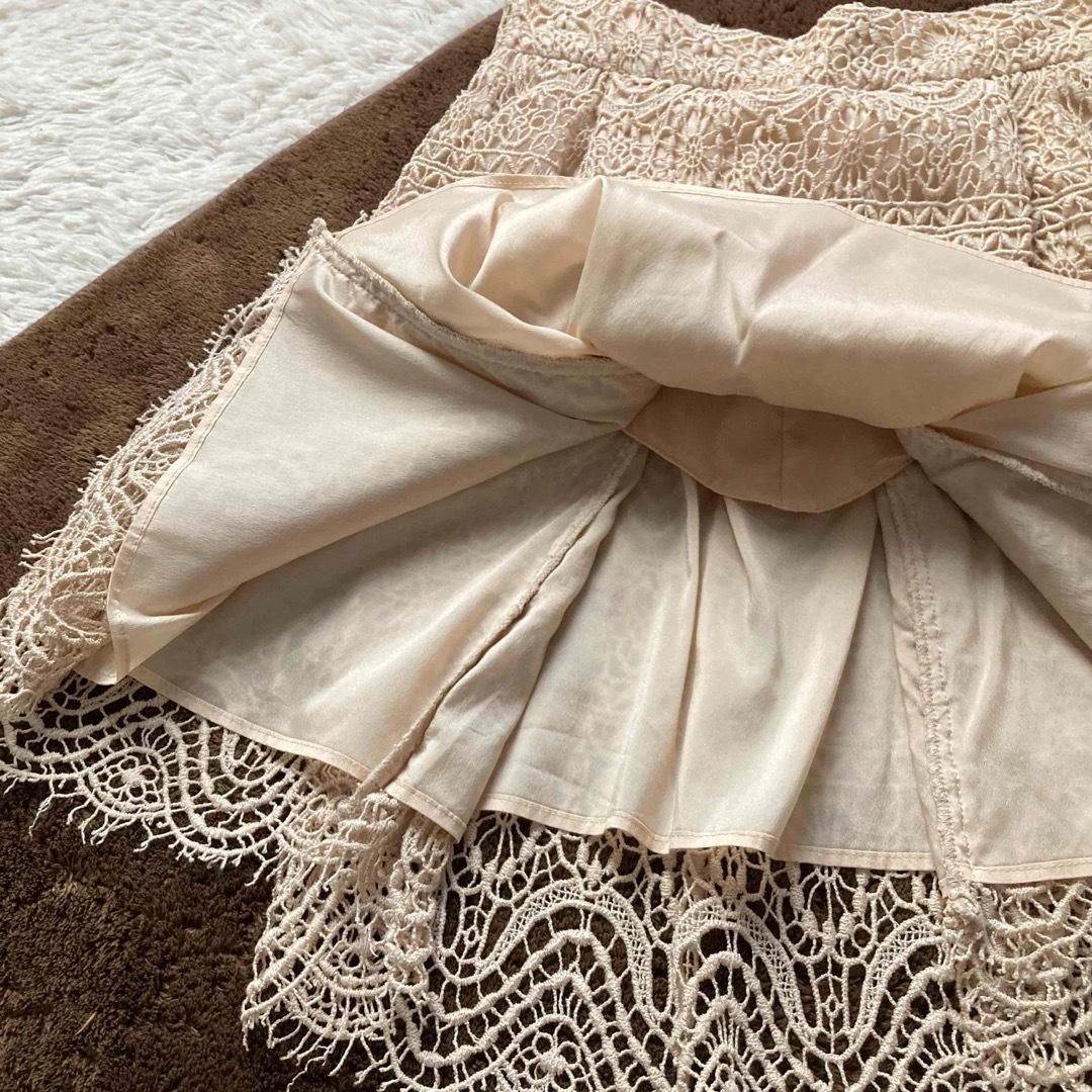 ヴァレンティノガラヴァーニ VALENTINO GARAVANI Aラインスカート フ スカート ひざ上丈 レース 裾カットオフ 切りっぱなし イタリア製 2010年前後 ベージュ 38サイズ WWW_NICORILABO_COM