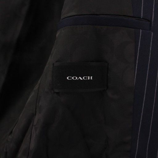 コーチ COACH ダブルスーツ セットアップ テーラードジャケット アウター 総裏地 スラックスパンツ ジップフライ ストライプ柄 XS 紺 ネイビー BBの検索結果