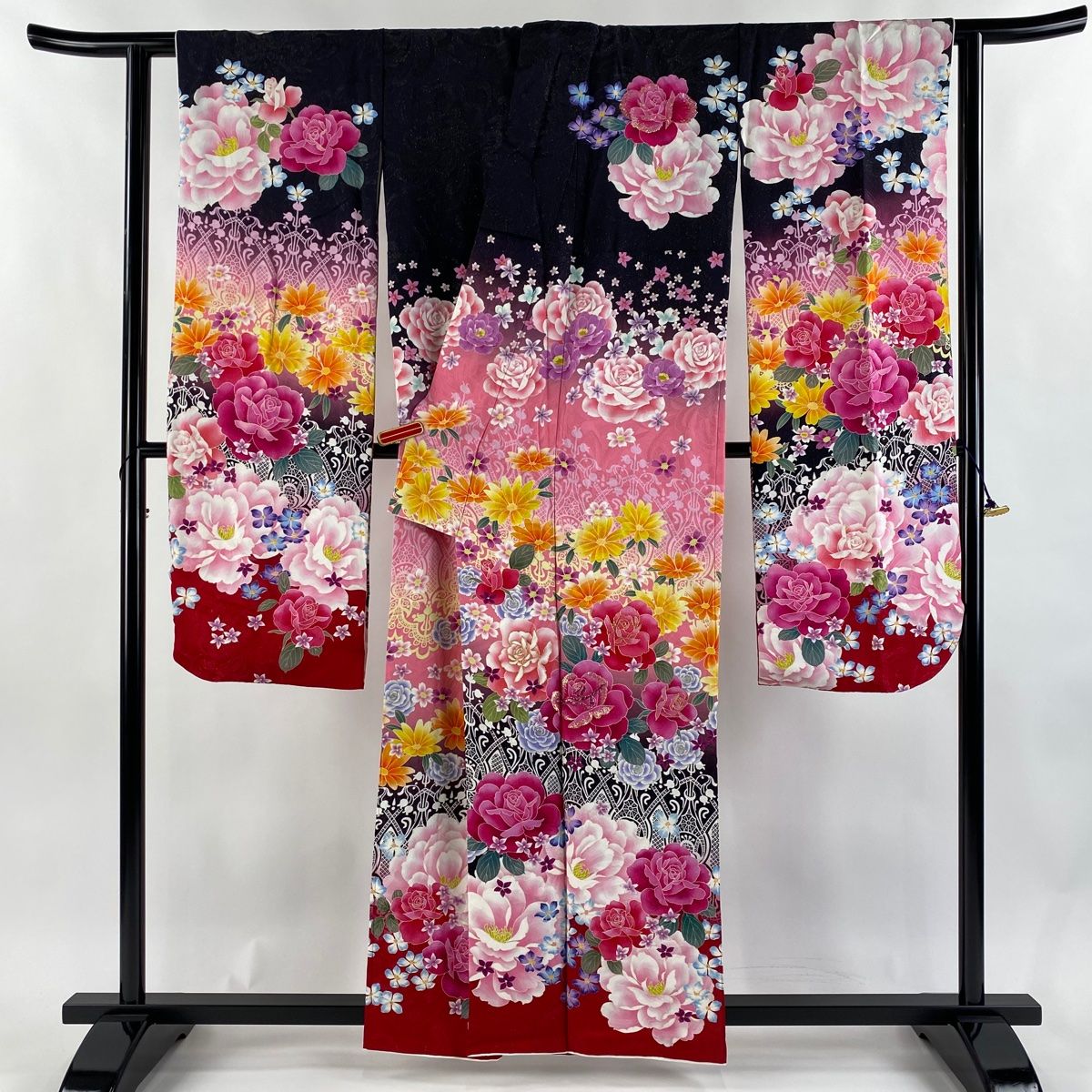 振袖 身丈160cm 裄丈63cm S 袷 薔薇 草花 銀通し ラメ 黒 正絹の検索結果