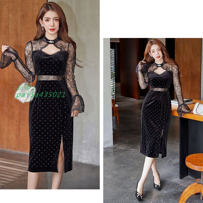 シースルーレース長袖 ベロア生地タイトドレスワンピース 黒 およばれ 結婚式 おしゃれ レディース ドレス きれいめ 韓国 pai5a435021の検索結果