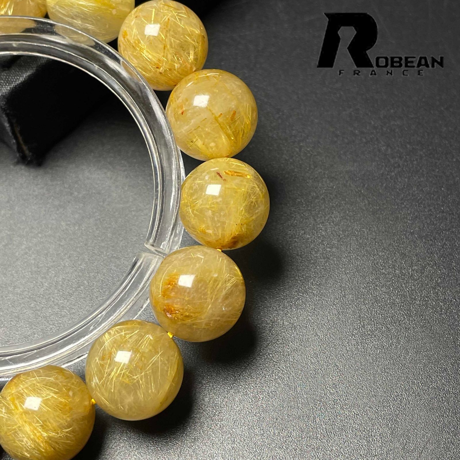EU製 定価32万円 ROBEAN 太陽花タイチンルチル 黄金針水晶 金運 開運 ゴールド ブレスレット パワーストーン プレゼント 13.7-14.6mm M1025848