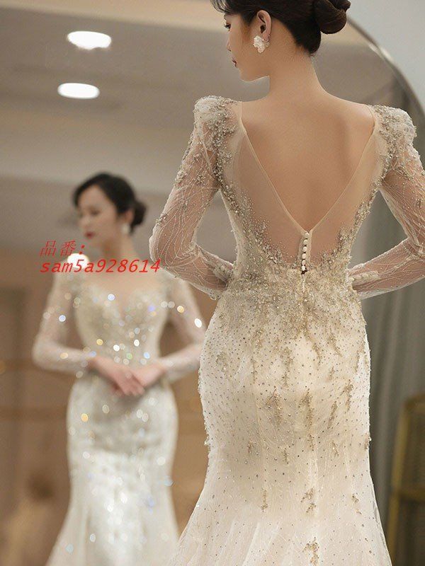 花嫁 ウェディングドレス マーメイドドレス スイートハートネック プリンセスライン 白ドレス トレーンドレス 長袖 am5a928614 WWW_NICORILABO_COM