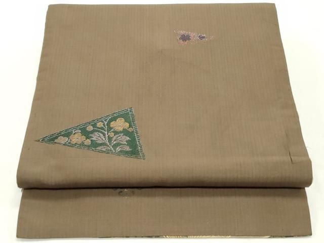 平和屋着物*夏物 アンティーク 大正ロマン 丸帯 引き抜き帯 風景草花文 金銀糸 正絹 DAAX5932cm