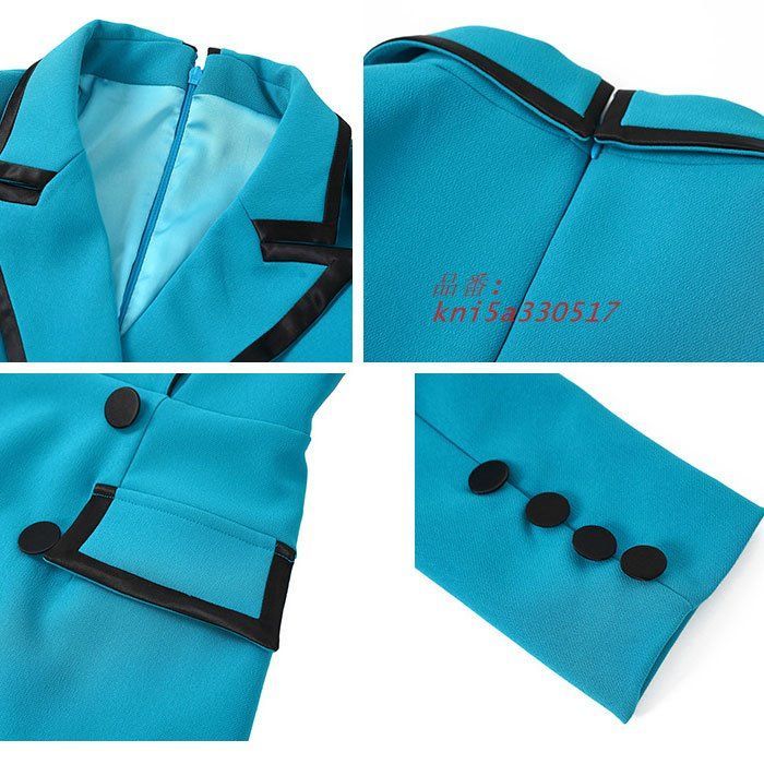 大きめ襟カシュクールVネック 長袖ジャケットスーツ風 ショートワンピース 青 キャバ スナック レディース ラウンジ 服 韓国 kni5a330517 WWW_NICORILABO_COM