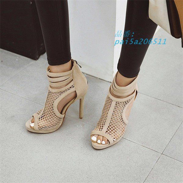メッシュブーツ サンダル レディース 厚底 美脚 通気 カジュアル ブラック PU 大きいサイズ おしゃれ 透かし 杏色 pai5a206511 WWW_NICORILABO_COM