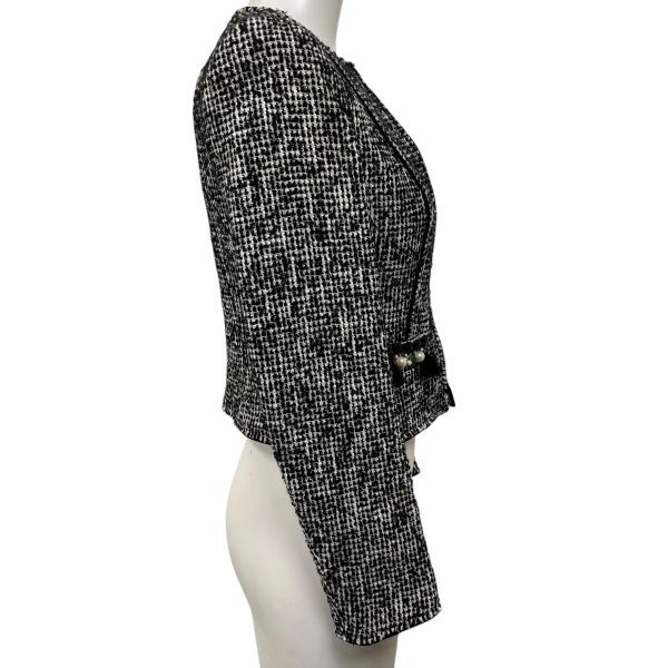 ◆ ♥ エポカ Epoca ツイード ジャケット ノーカラージャケット 上着 羽織り パール ビジュー 黒 白 毛 綿 38 M 9号 レディース S5W266の検索結果