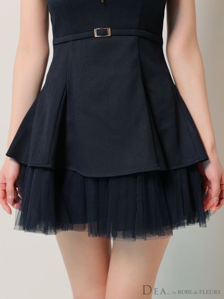 ブラックアイボリー DE3444 DEA. by ROBE de FLEURS|ディアバイローブドフルール ツイル| ジッパー| ウエストベルト| ノースリーブ| チュール| ティアード| フ | ドレス| キャバドレス| ワンピース| ナイトドレス WWW_NICORILABO_COM