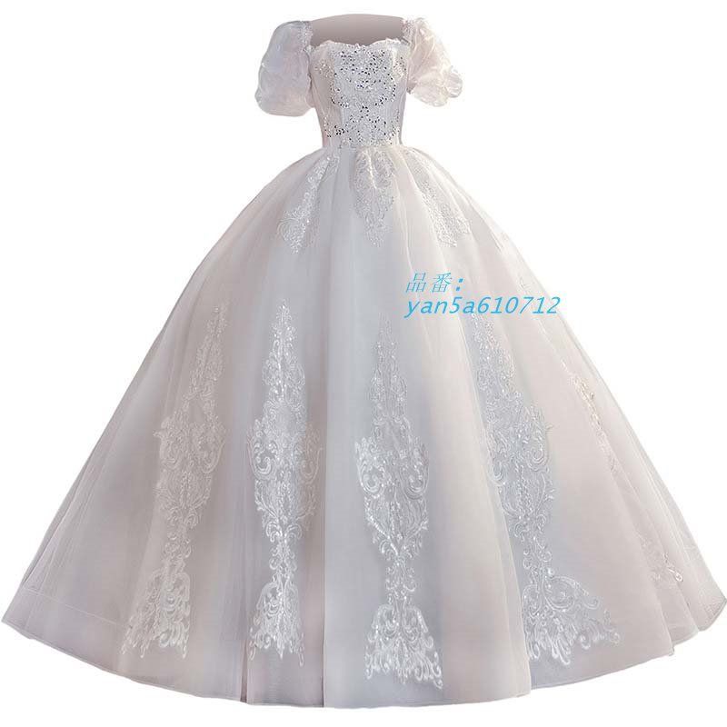ウエディングドレス ロングドレス 白 Aライン イブニングドレス 半袖 パニエ付き 二次会 披露宴 結婚式 大きいサイズS-9XL ベール yan5a610712 WWW_NICORILABO_COM