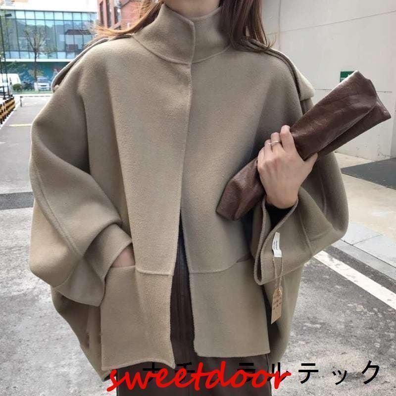 ショートコート レディース きれいめ ファッション 20代 30代 40代 50代 女性 冬 秋 マントコート ルーズウールコート スタンドカラー アウター 秋冬 WWW_NICORILABO_COM