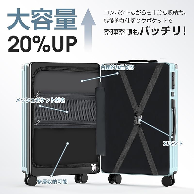 New Trip スーツケース キャリーケース フロントオーポン 片開き PC 拡張機能付き 機内持ち込み キャリーバッグ USBポート付き ストッパー付き スマホスタンド 隠しフック 軽量 大型 S|M|Lサイズ 耐衝撃 ファスナータイプ 静 0